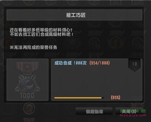 CSOL荣誉称号能工巧匠怎么获得猫咪网络2年前发布关注私信7010 需要在CSOL游戏中完成以下任务: 成功合成1000次。 完成该任务即可获得该称号和10点荣誉点。 THE END反恐精英OL# CSOL 喜欢就支持一下吧点赞0 分享QQ空间微博QQ好友海报分享复制链接收藏